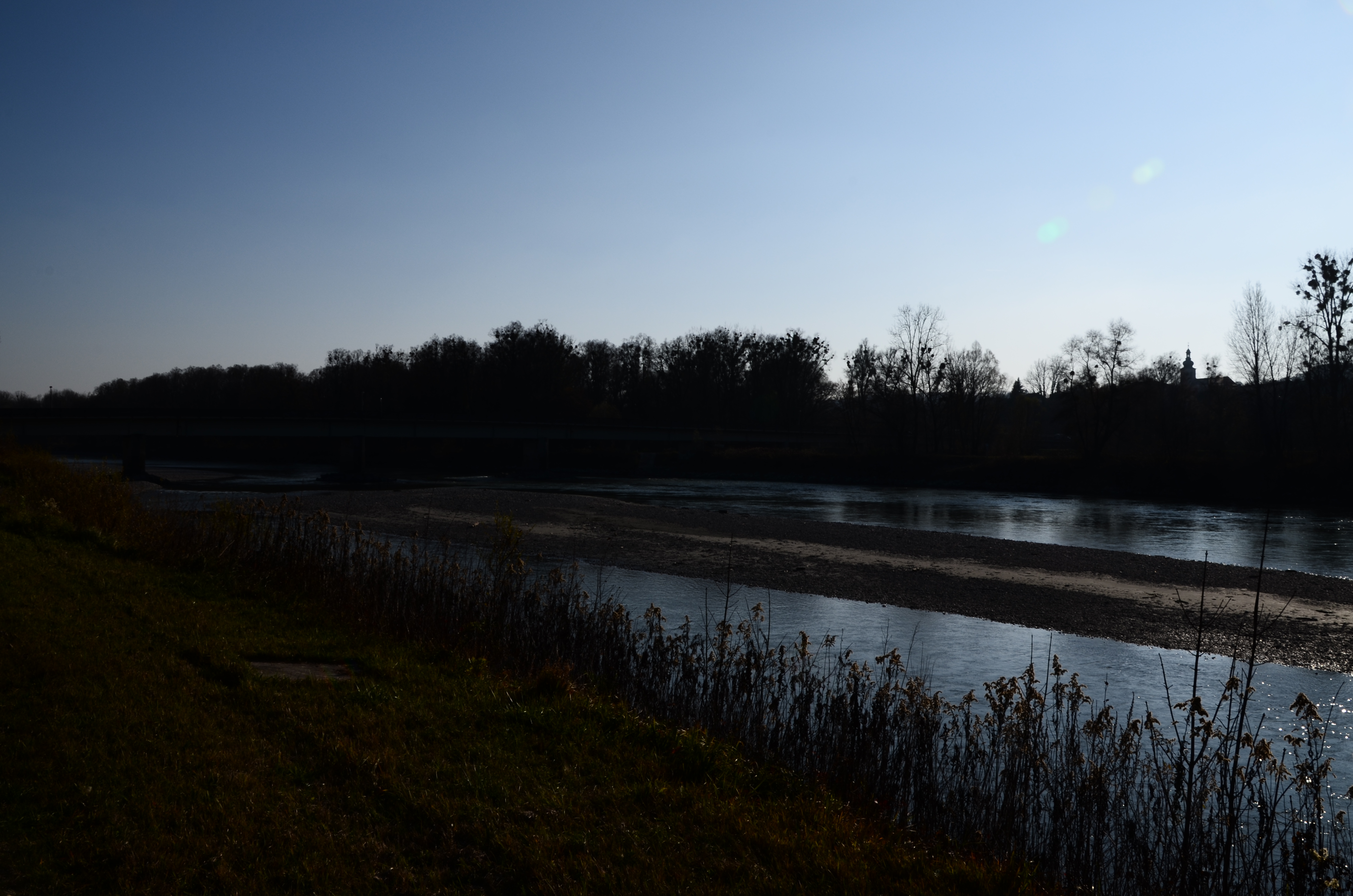 Mitte November 2018 Niederwasser der Salzach bei herrlichem Wetter