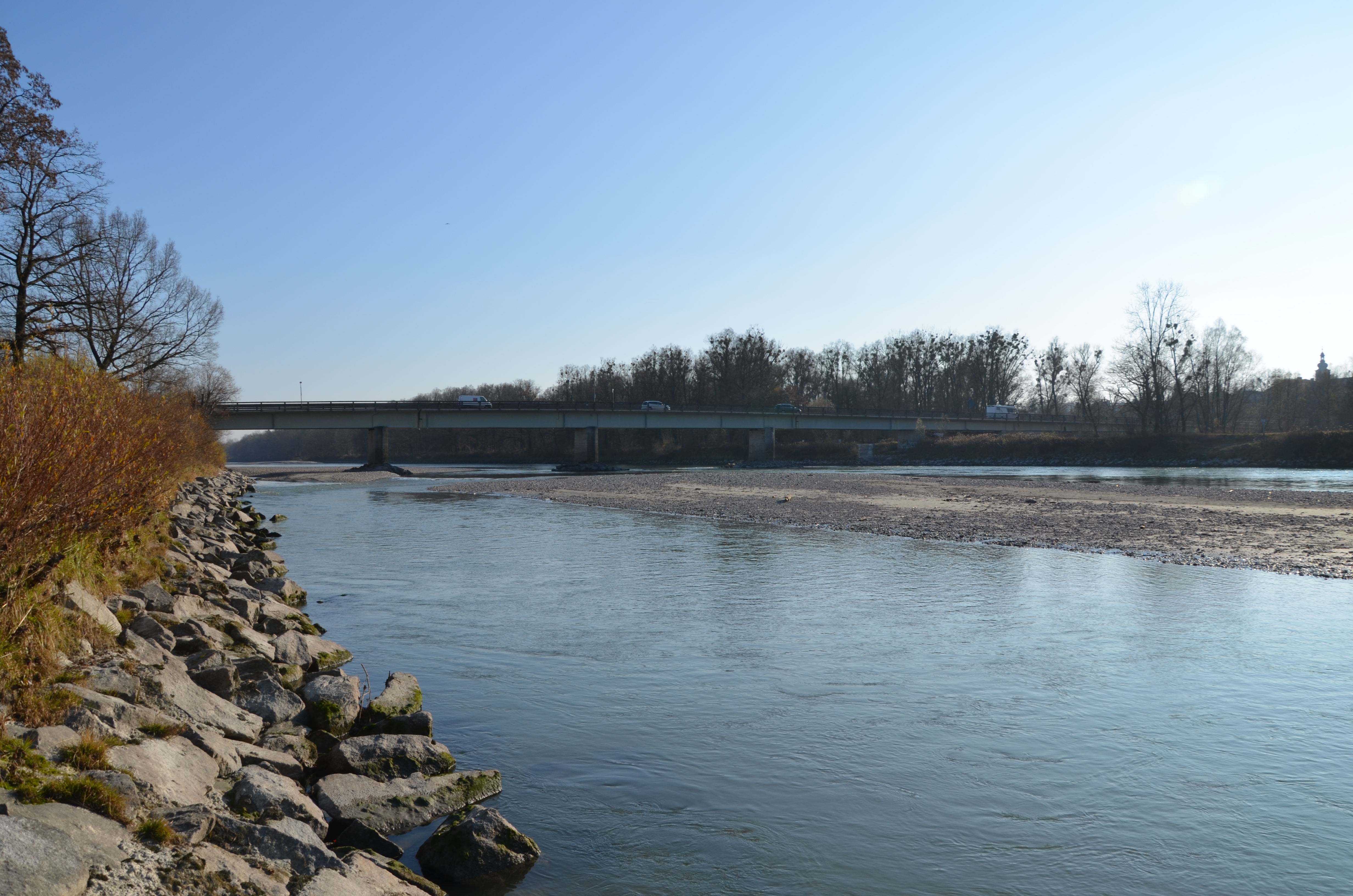 Mitte November 2018 Niederwasser der Salzach bei herrlichem Wetter